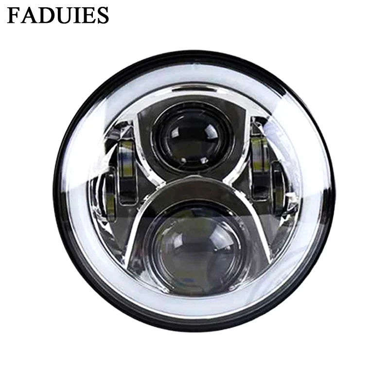 Related Product for FADUIES 7" Round 50W Angle Eyes LED Projector Motorcycle Headlight with DRL Bulb For Motorcycle Roa
