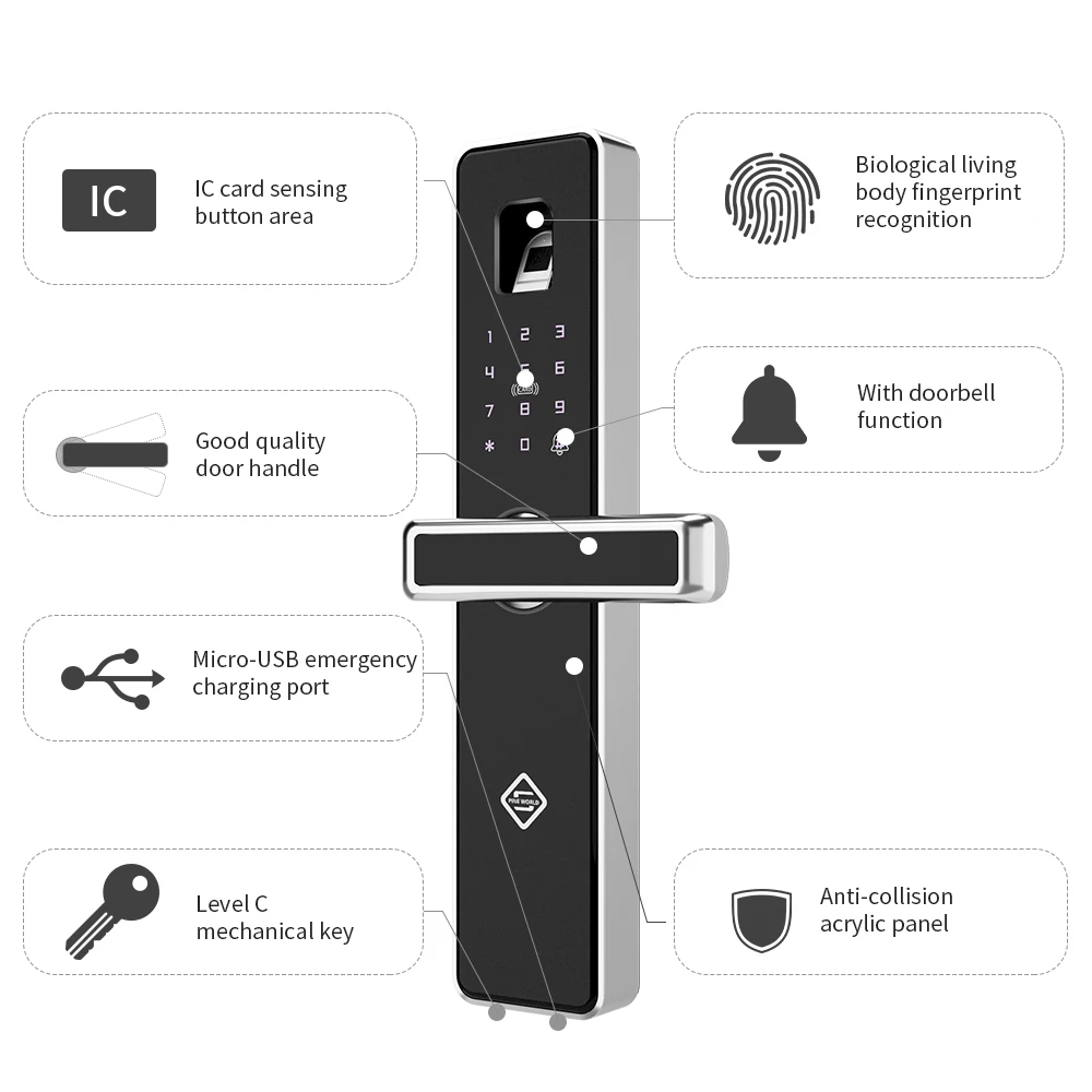 Related Product for PIORLD Biometric Fingerprint Door LockIntelligent Electronic LockFingerprint Verification With Pass